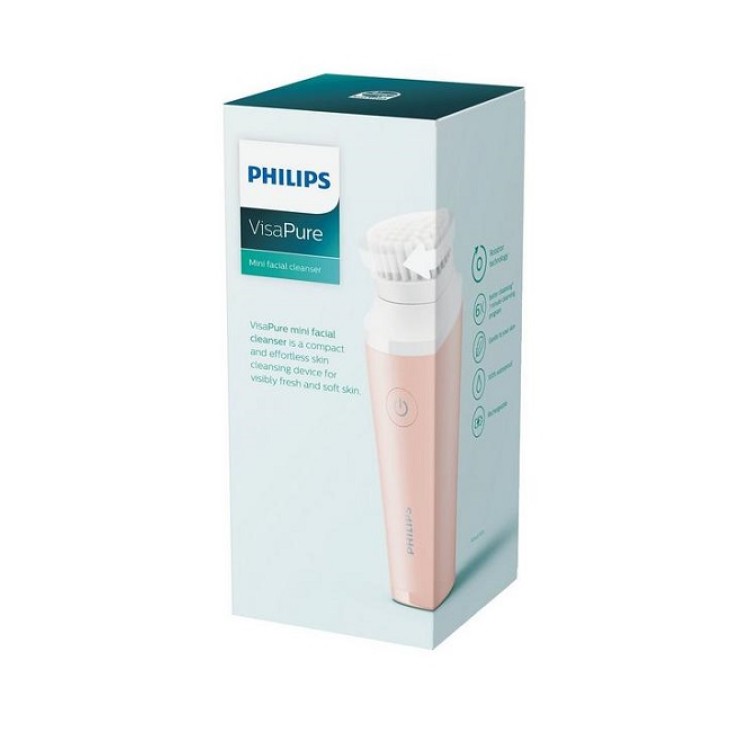 Cleansing device for visibly fresh and soft skinVisa . Pure Mini facial cleanser with rotation technology that is perfect for daily skincare. Using a facial brush has been compared to a mini-microdermabrasion or a mini-massage, the surface of the skinis stimulated, which will make your skin more radiant and smooth. Exfoliation tightens the skin and removes dead skin cells, shrinking the appearance of pores over time. The rotating motion quickly but very gently removes impurities leaving the skin deeply cleansed. Visa Pure mini facial cleanser is tough on impurities, but gentle to your skin. Thanks to the rotation technology and its silky soft, thin and dense bristles you get six times better cleansing results for soft and radiant skin compared to any normal cleansing brush. When fully charged, this device has cordless power for 45 uses, equivalent to over 3 weeks when used twice per day.