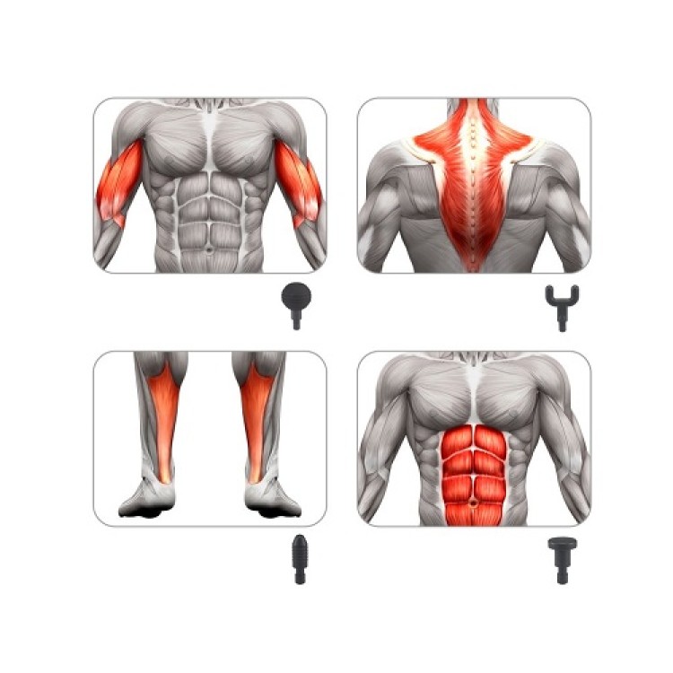 The massager is equipped with 4 differently shaped massage heads to relax different parts of the body. The massage can be managed according to the area and the pain through 6 selectable intensity levels. Suitable for warming up before a game, post-workout, or as a daily massage of some muscle groups. The long-life lithium battery allows cable-free operation for maximum operating comfort. guarantee 1.5 hours of autonomy when using the massager. It recharges quickly in just 2.5 hours.